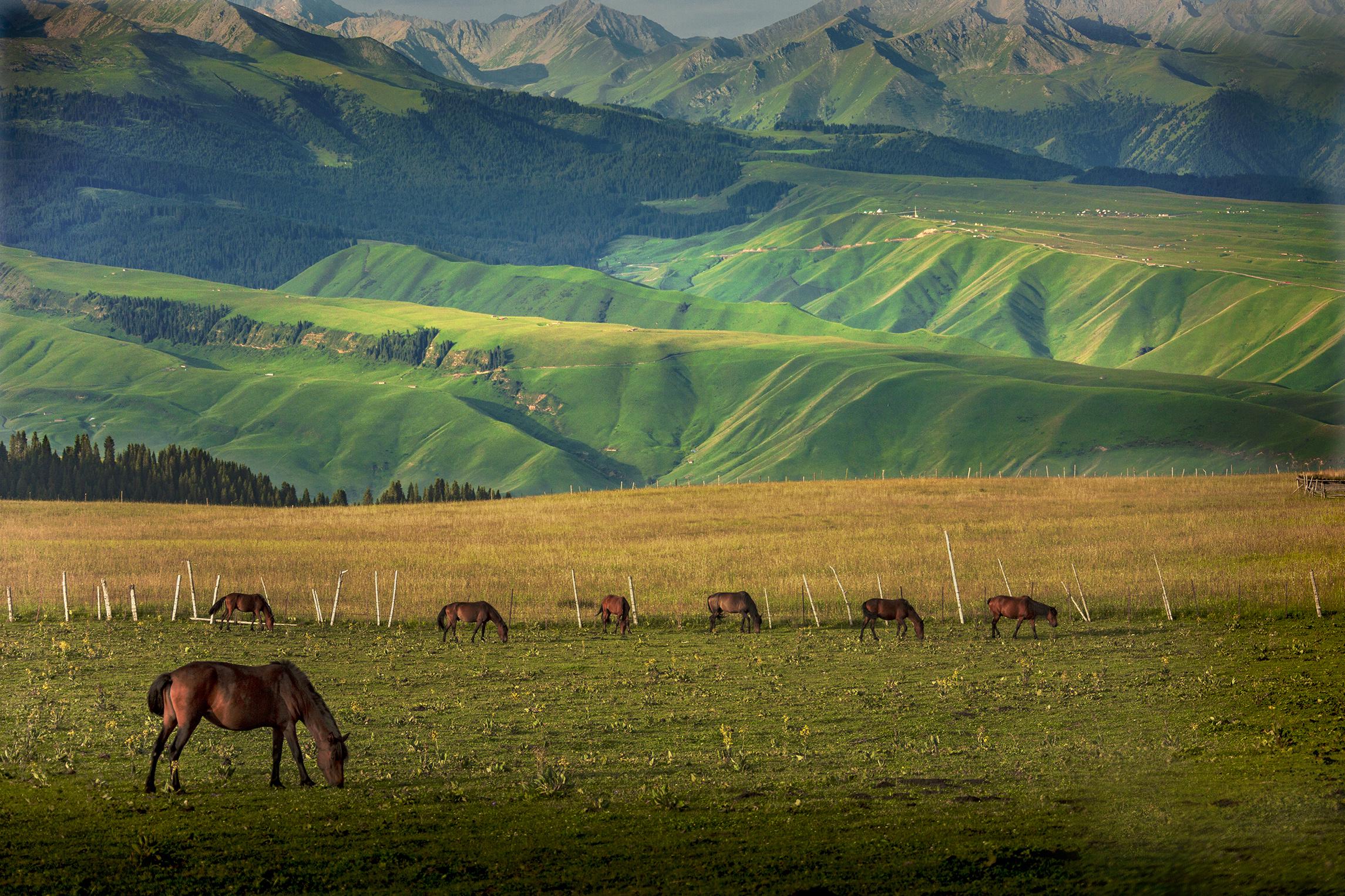 天山脚下牧歌扬,草原骏马疾。